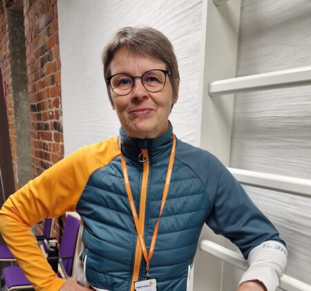 ”Liikun paljon, teen käsitöitä ja kuuntelen äänikirjoja. Lisäksi osallistun talkootyöhön, esimerkiksi parin viikon takaisissa yleisurheilun SM-viesteissä olin mukana vapaaehtoisena. Tykkään olla kotona, mutta viihdyn myös ihmisten parissa, liikkumassa, puuhailemassa ja auttamassa, missä ikinä voin.”